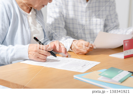書類に記入するシニア夫婦 終活