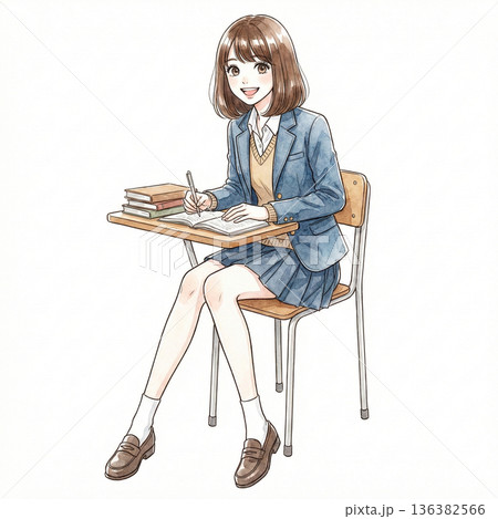学習塾の挿絵に使える笑顔で前を向く中学生女子のアニメ風イラスト