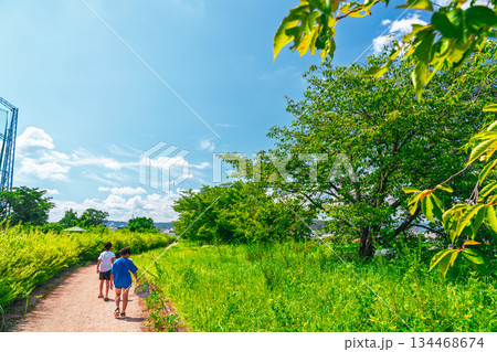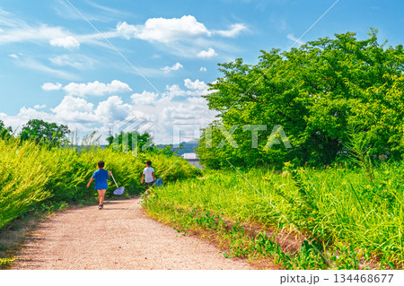空き地でさぼる登下校中の小学生