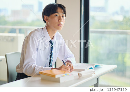 勉強に励む男子高校生