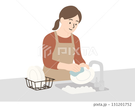 お皿洗いをする主婦