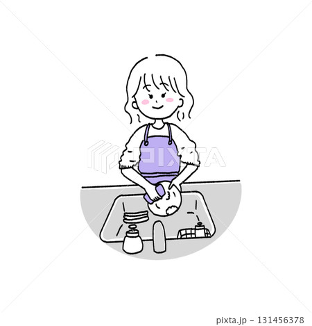 お皿洗いをする 女の子 イラスト