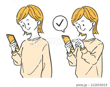 ソファに座ってスマホを操作するシニア女性のイラスト素材