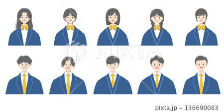 日本人学生のアイコンセット かわいい高校生・中学生の上半身ベクターイラスト素材