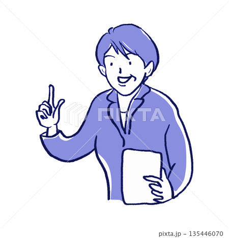 説明をするビジネス風の男性のイメージイラスト素材