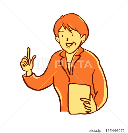 説明するミドルビジネスマン【鉛筆画黄系】