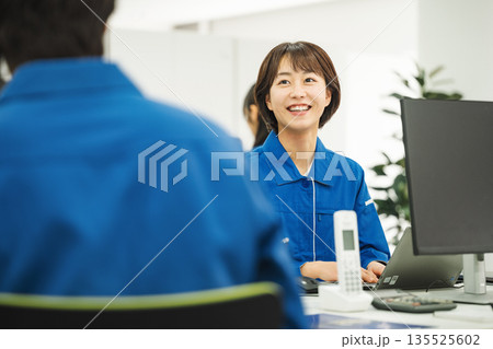 ビジネス 接客をする窓口の女性