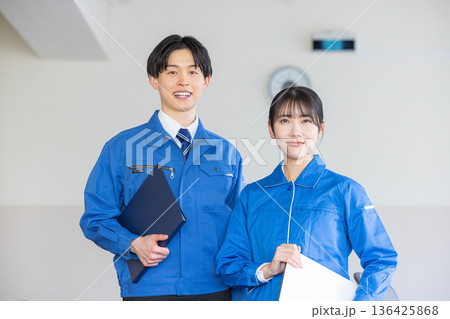 作業着を着た男女