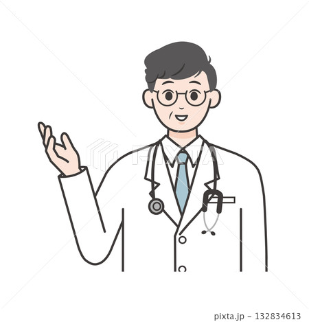 笑顔で案内する男性医師のイラスト