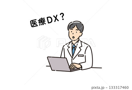 もやもや悩む白衣姿の男性(全身):イラスト素材