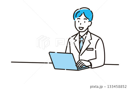 笑顔でまっすぐ立つ白衣姿の男性(全身):イラスト素材