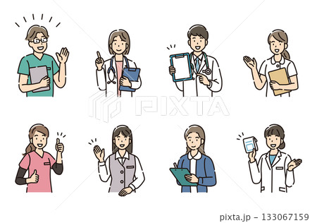 医者・看護師・医療事務の男女上半身セット【人物ベクターイラスト素材】