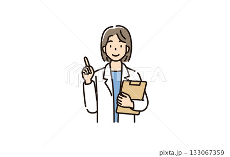 笑顔で案内する白衣姿の女性(全身):イラスト素材