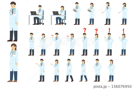 医療従事者のいろいろなポーズと表情のセット