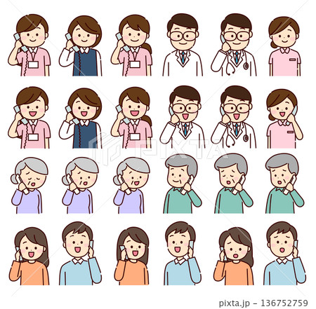 看護師と患者家族 電話応対をする人々セット