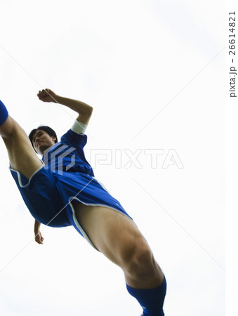 ボールを蹴るサッカー選手