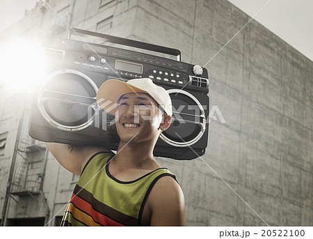 Male dancer listening to music on mp3 player