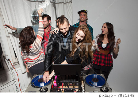 Disc jockeys dancing at party