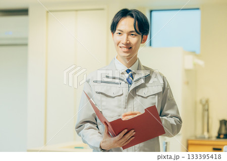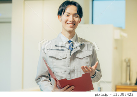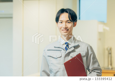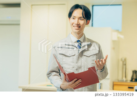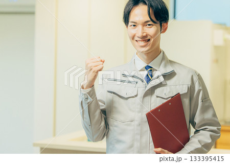 日勤専属のブロックと作業着を着たミドル男性ビジネスマン