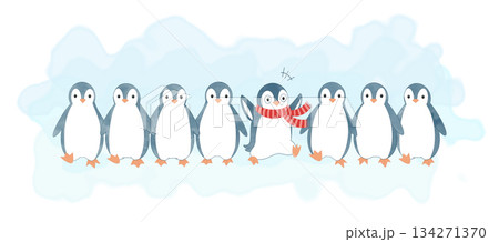 かわいいペンギンの手描き風のキャラクターイラストセット