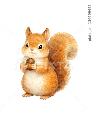 リス どんぐり 水彩 立ち姿 かわいい 動物 イラスト 切り抜き素材