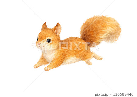 リス 走る 横向き 水彩 小動物 かわいい イラスト 切り抜き素材