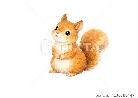 リス おすわり 正面 水彩 かわいい 小動物 イラスト 切り抜き素材