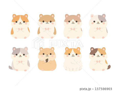 ゆる可愛いゴールデンハムスターのイラストセット