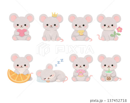 可愛いネズミのイラスト_ネズミ_色々な表情セット