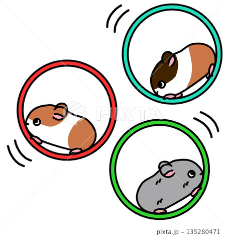 回し車でくるくる走る動物たちのかわいいイラスト