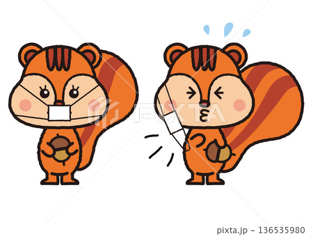 りすがマスクとくしゃみをしているイラスト