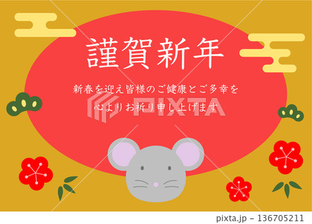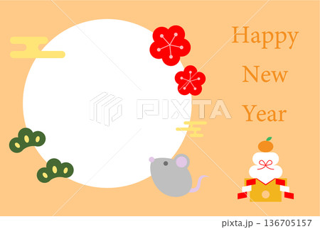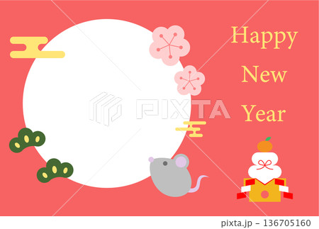 鼠の年賀状ハガキイラストテンプレート
