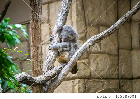 木にしがみついて眠るコアラ