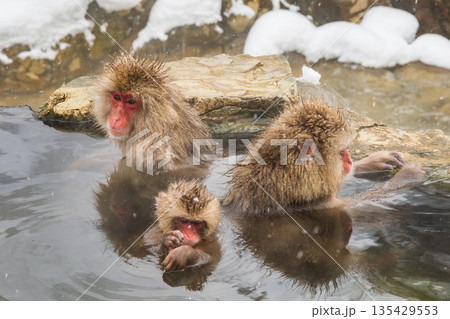 温泉 猿 冬 雪景色