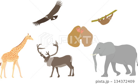 ゾウ キリン ブタ シカ カンガルーのシルエット素材セット