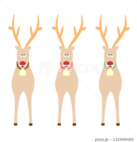 クリスマスのイラスト 可愛いトナカイ達 12月 ベクター 白バックpng透明透過