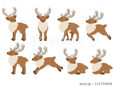クリスマスのイラスト 可愛いトナカイ達 12月 ベクター 白バックpng透明透過