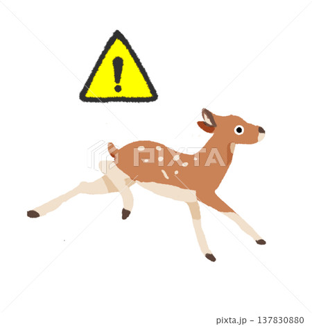 交通安全イラスト 注意マークと鹿 かわいい動物の危険注意
