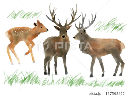 水彩で描いた小鹿【手描き】イラスト素材 白バック 透過背景 コピースペースあり
