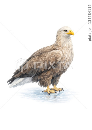 羽を閉じて立つ鷹を斜め前から見たイラスト