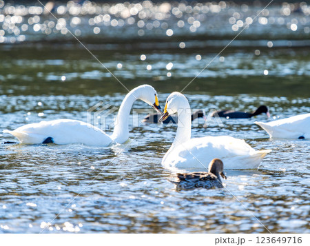 首都圏の荒川で越冬する優雅で美しい白鳥たちとカモ