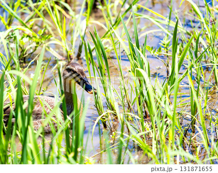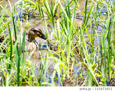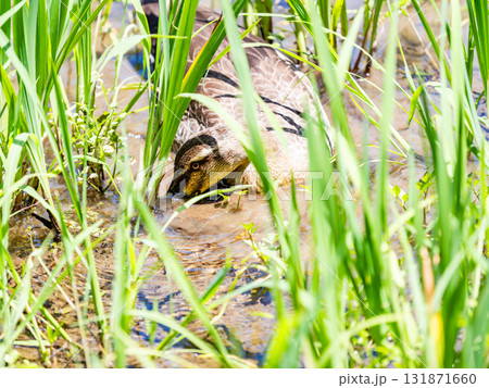 菖蒲田で水草をついばむ鴨