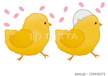 桜の花びらとひよこのイラスト