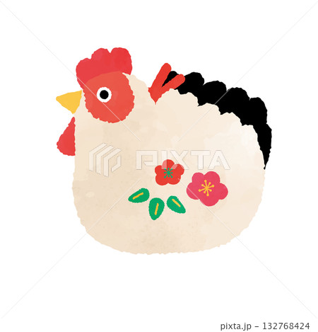 ニワトリの雄鶏の懐かしい田舎風和風手書き筆イラスト