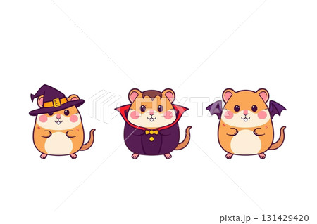 フラットベクター風のハムスターキャラクター ハロウィンイラスト素材