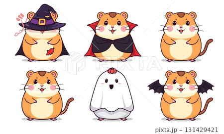ハロウィン仮装をしたかわいいハムスターのイラストセット(透過PNG)
