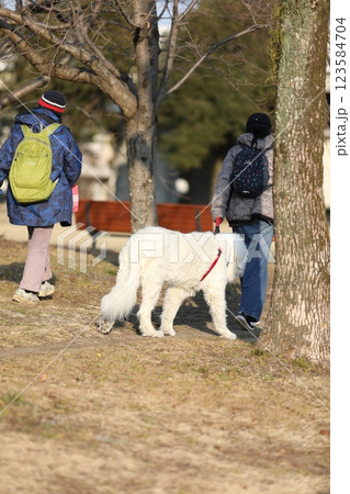 散歩を楽しむ温厚なラブラドールレトリーバー(冬)