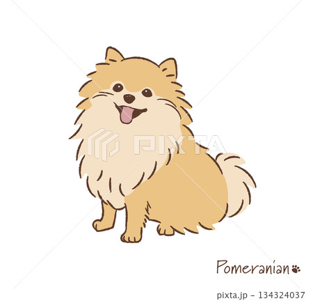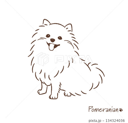 遊びに誘うシンプルで可愛いポメラニアンの手描きのイラスト 主線なし