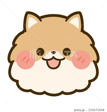 可愛い手書きの幼いポメラニアンの顔のアイコンイラスト