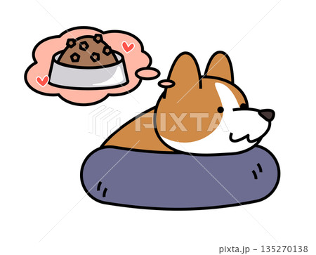 ごはんを楽しみに待つコーギーのかわいいイラスト